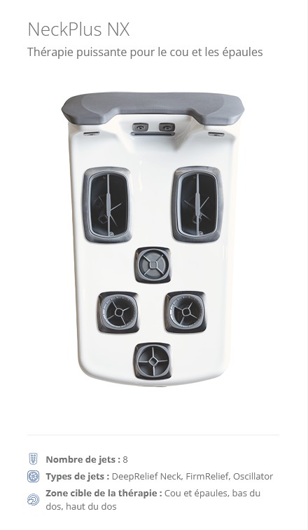 Les appuie-tête haut de gamme de la série A sont inclus sur toutes les versions. Ces appuie-tête testés pour le confort du cou et de la colonne vertébrale sont alignés pour le confort du cou et de la colonne vertébrale, offrant un ajustement amélioré, tout en s’intégrant parfaitement aux contours naturels du spa. Les appuie-tête de la série A sont dotés d’une surface à motifs contemporains pour plus de confort, de durabilité et un look frais.